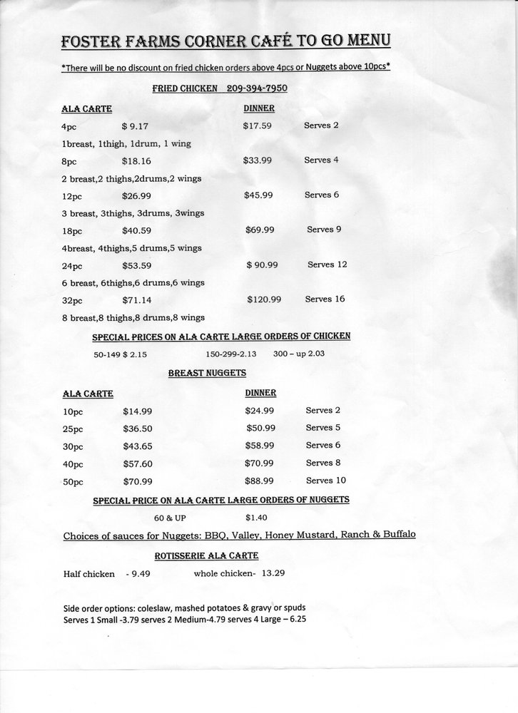 Welcome to Foster Farms, a beloved American café nestled in Livingston, CA. This eatery is a delightful haven for food lovers, offering a range of options for breakfast, brunch, lunch, and dinner. With a casual atmosphere that welcomes families and groups, Foster Farms excels in serving up mouthwatering fried chicken, hearty potato wedges, and delicious sandwiches like the imposter chicken delight, complemented by creamy sides.